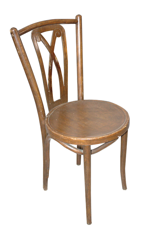 Dark brown, wooden cabaret chair with open fiddle back design.