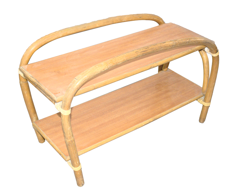 Light brown, rectangular, bamboo coffee table with wooden tops.