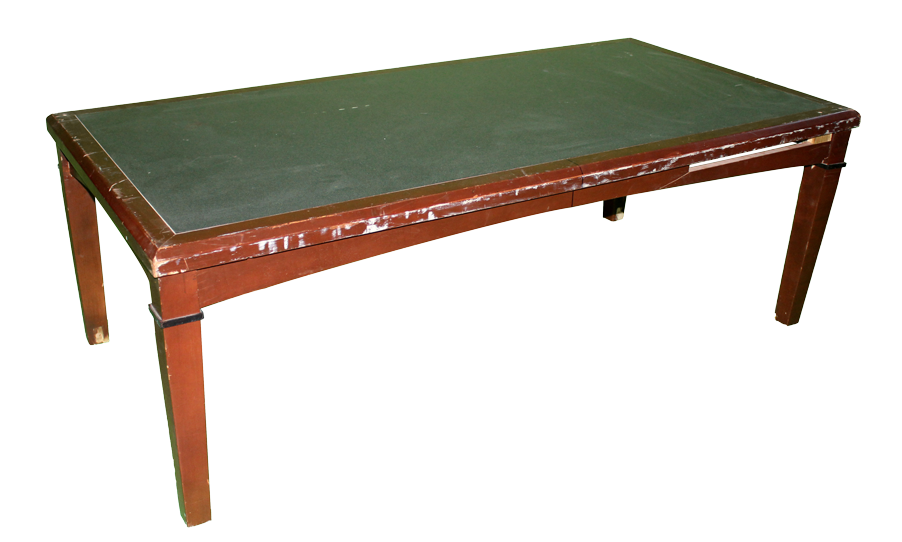 Red/brown, wooden, rectangular, coffee table with grey laminate top.