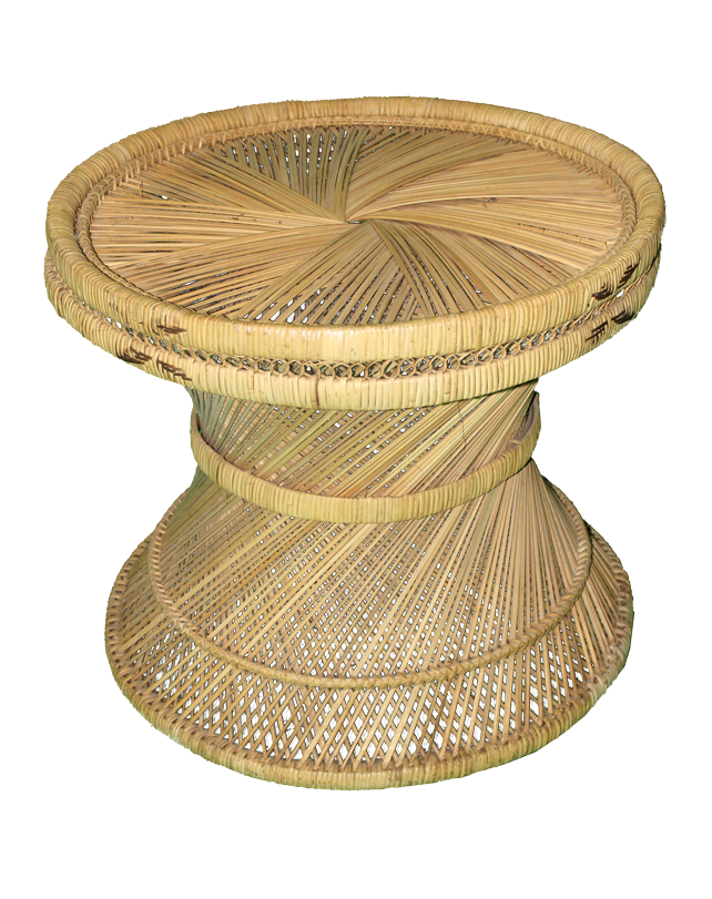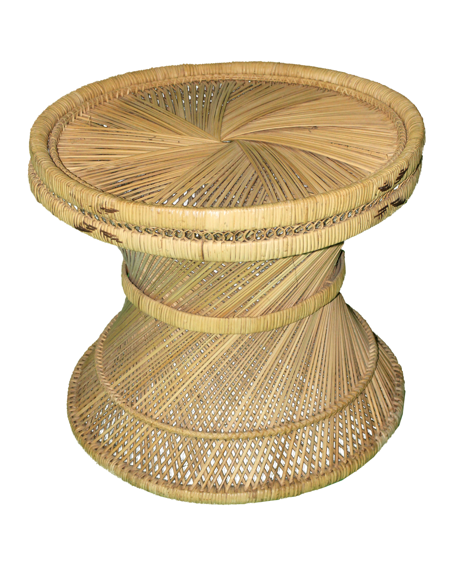 Blonde, rattan, circle, hourglass coffee table.