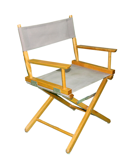 33" tall, light brown, wooden director's chair with taupe, canvas seat and back.