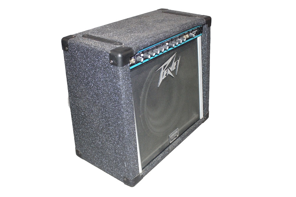 Dark grey Peavey Bandit 112 guitar amplifier with detached remote switch and attached power cord.
