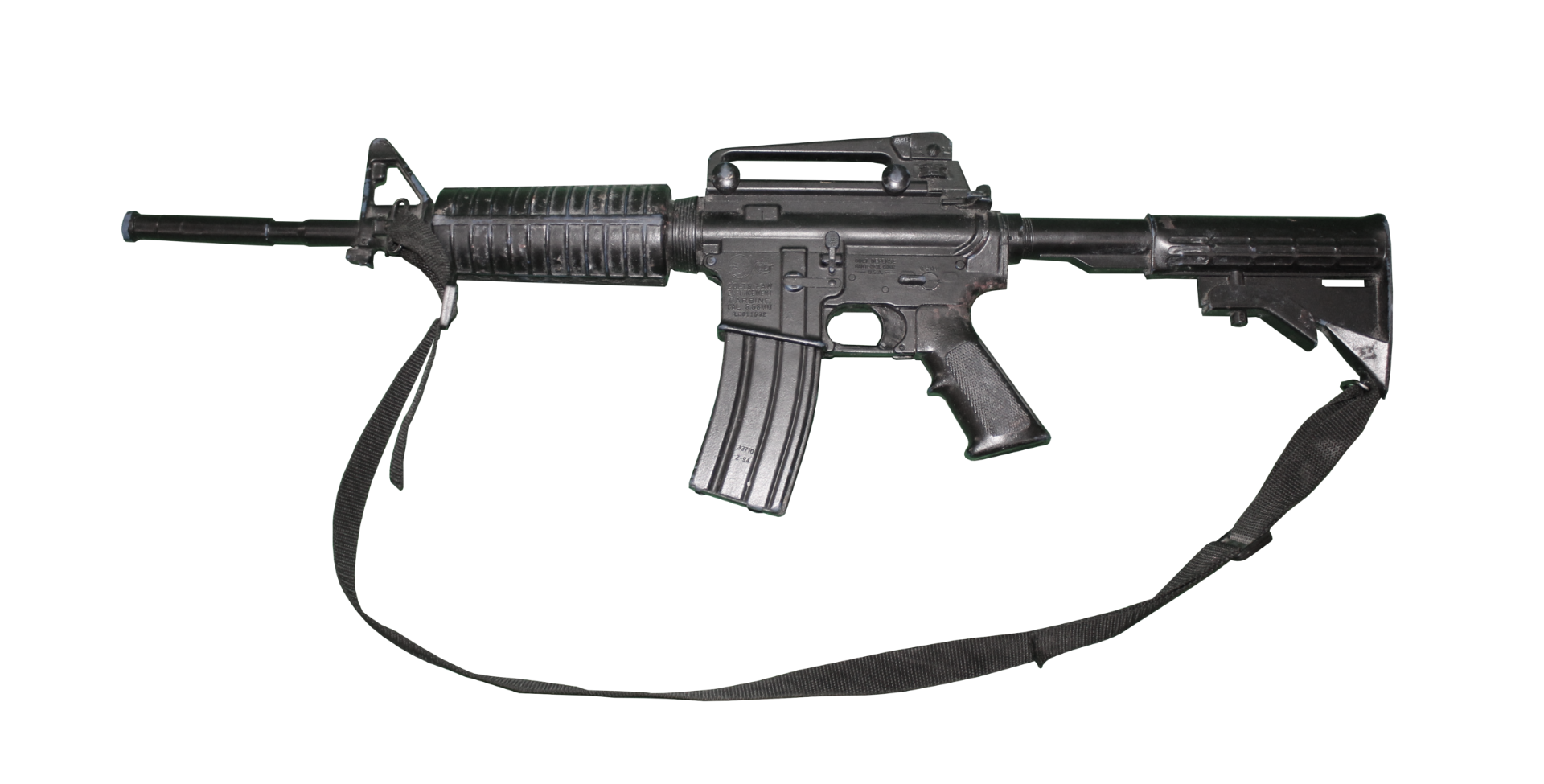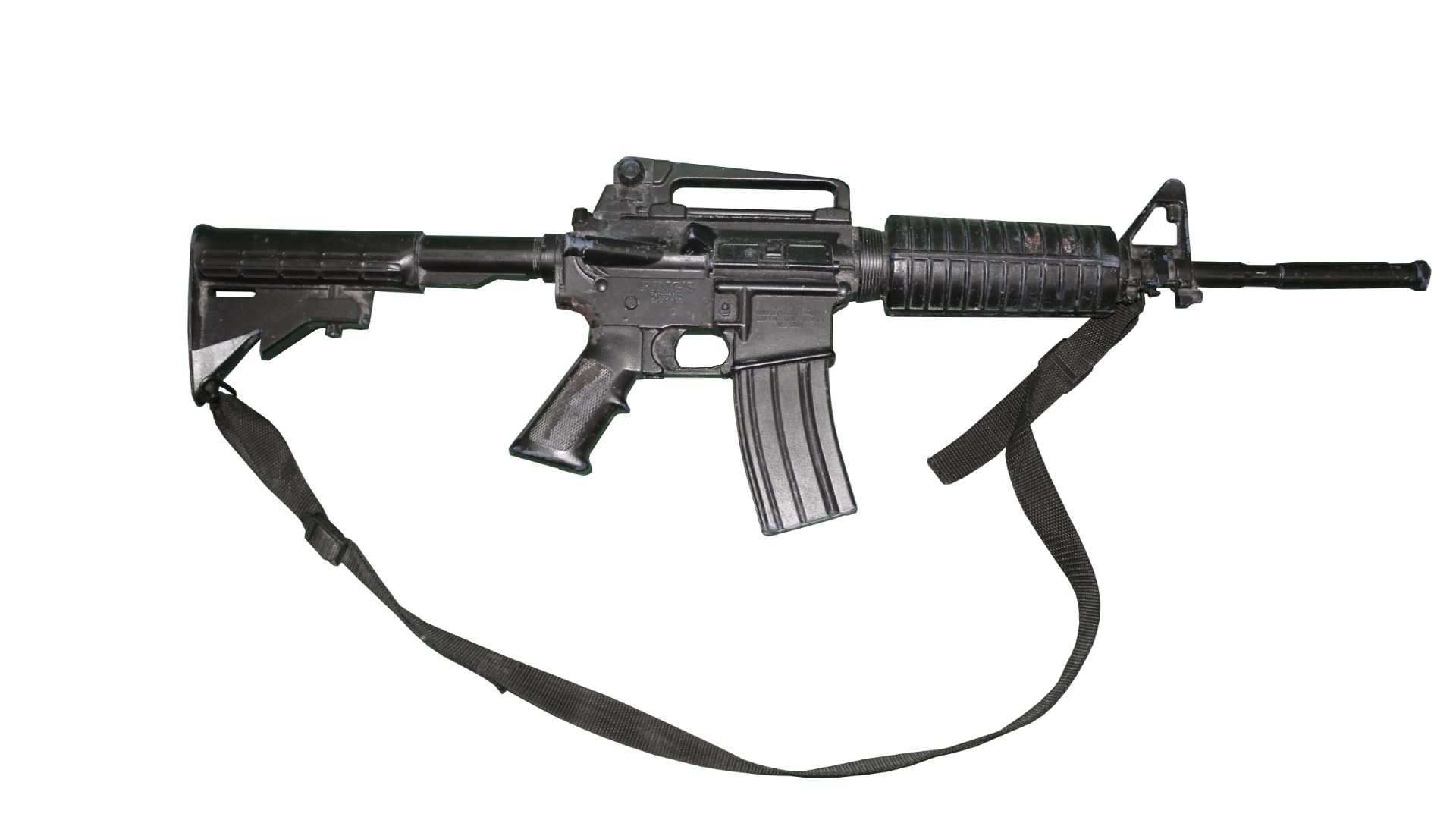 Black, polyurethane, Ring's AK-47 assault rifle with strap.
