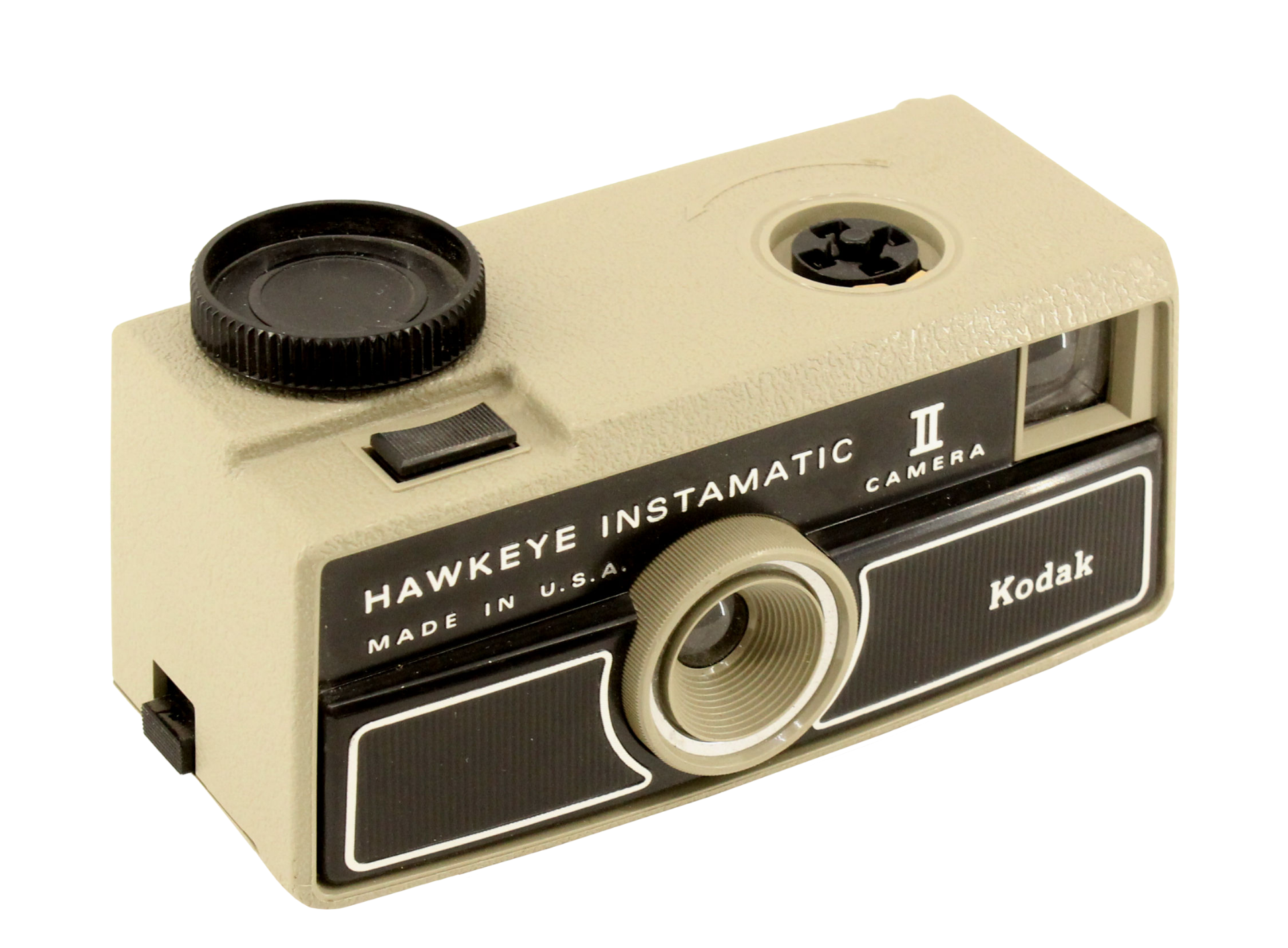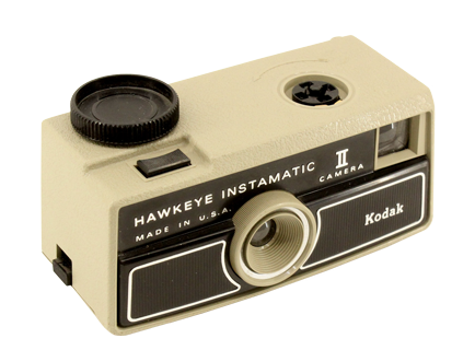 Taupe and black Kodak Hawkeye Instamatic II camera.