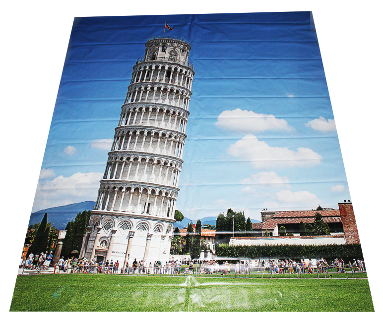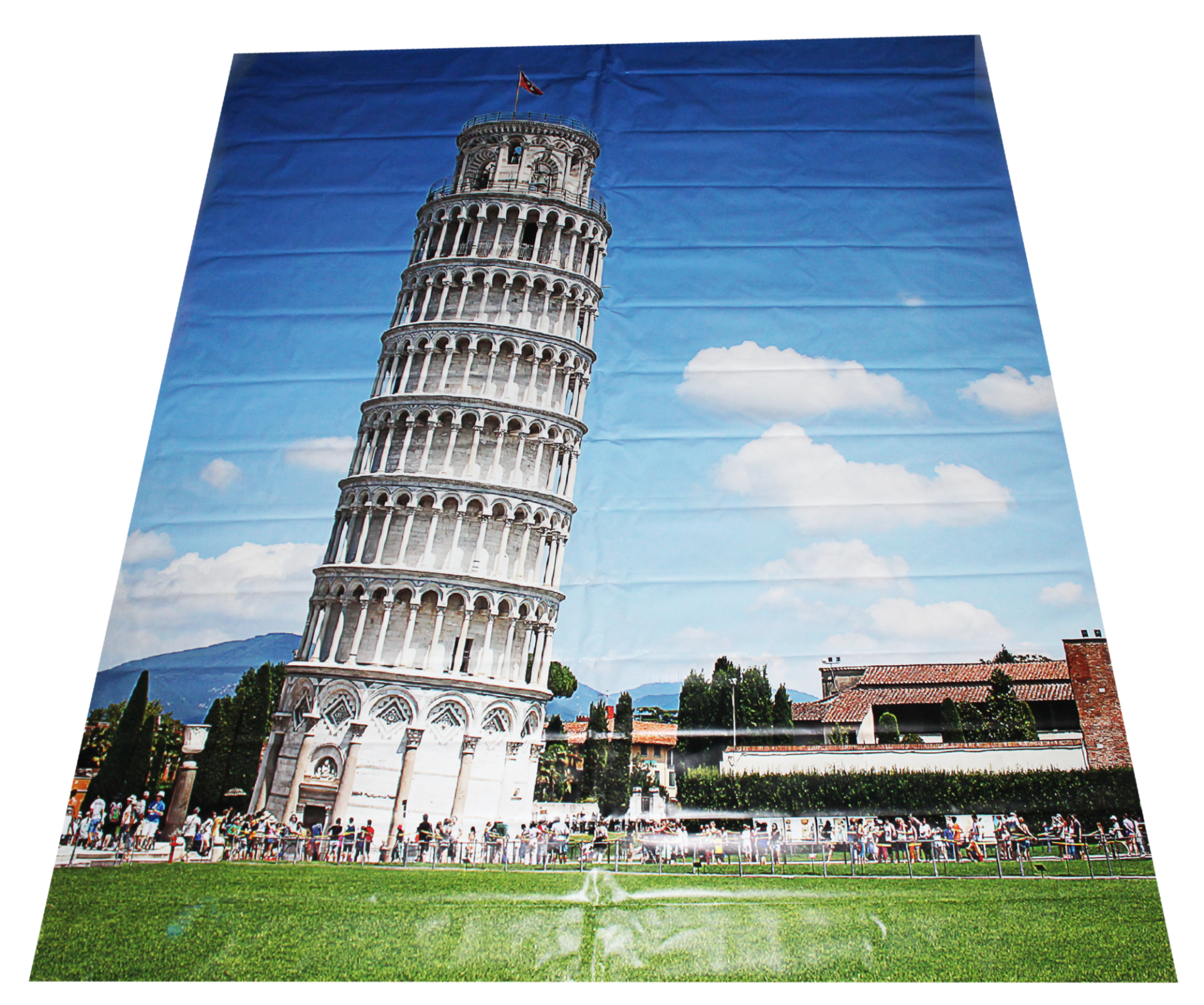 12'H x 10'W printed vinyl backdrop of The Leaning Tower of Pisa.