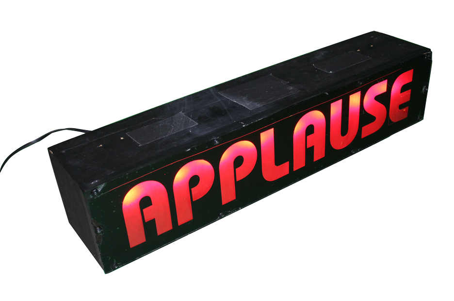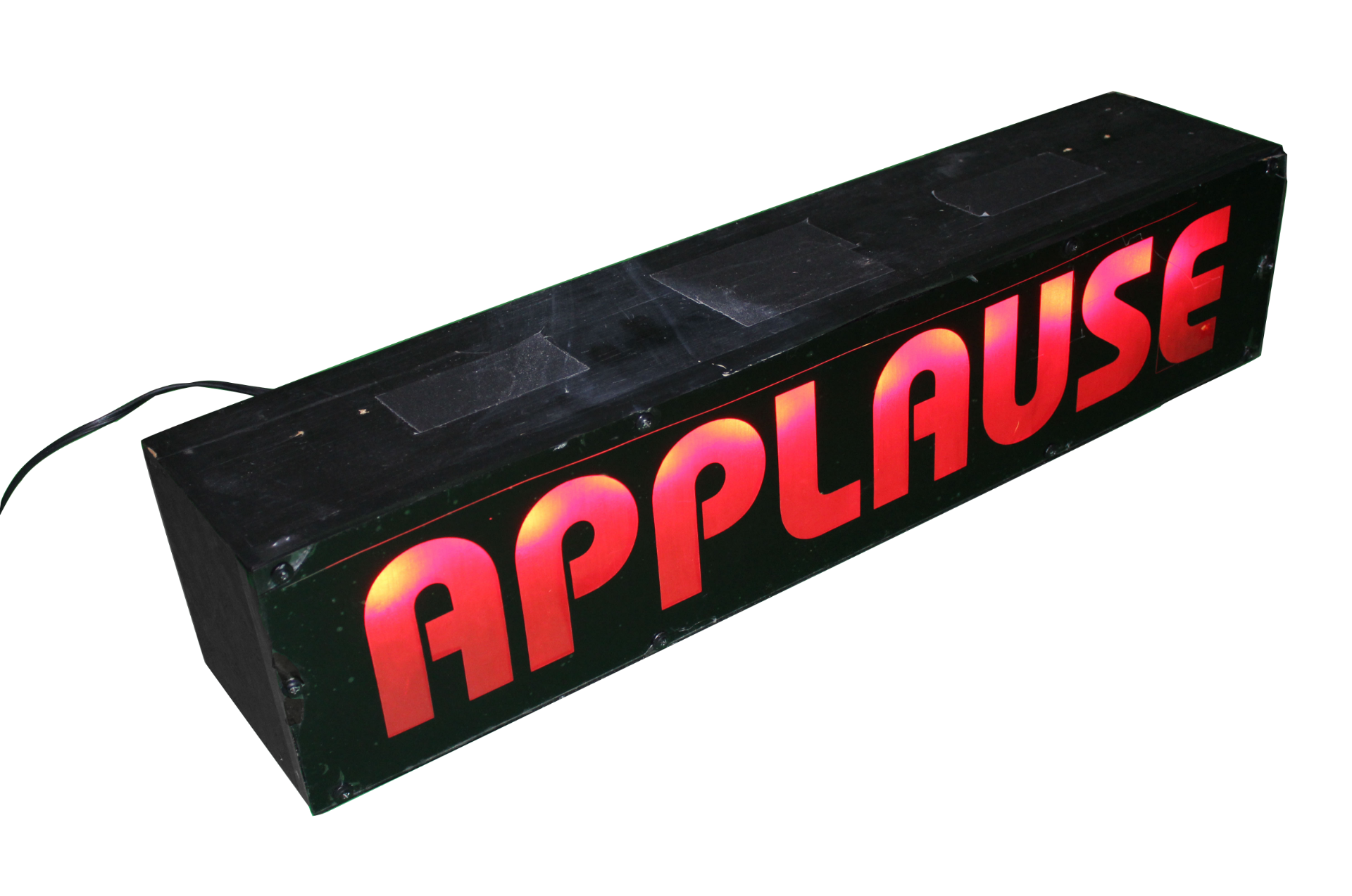 Black, rectangular, light up box sign that reads, "APPLAUSE" in red letters.
