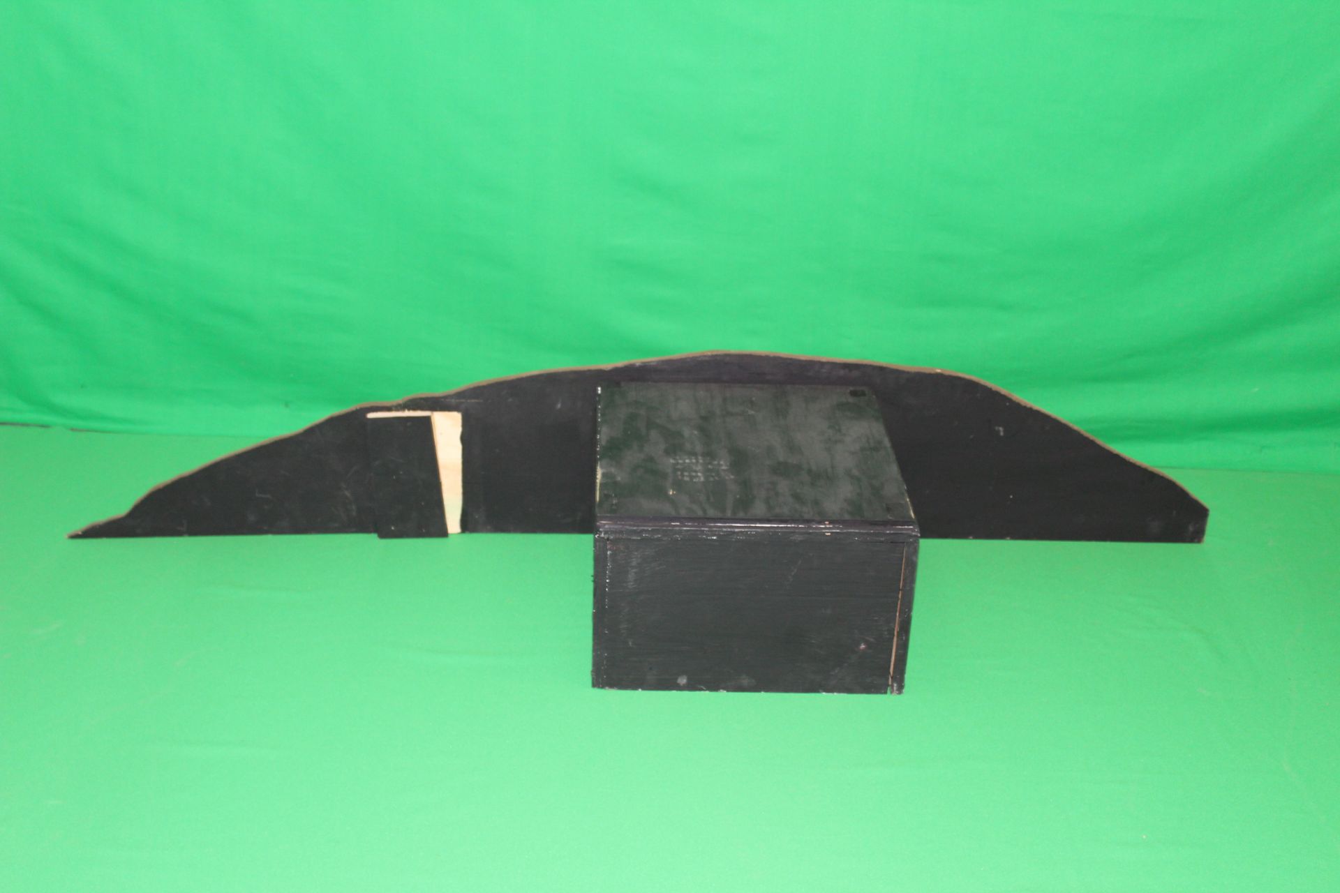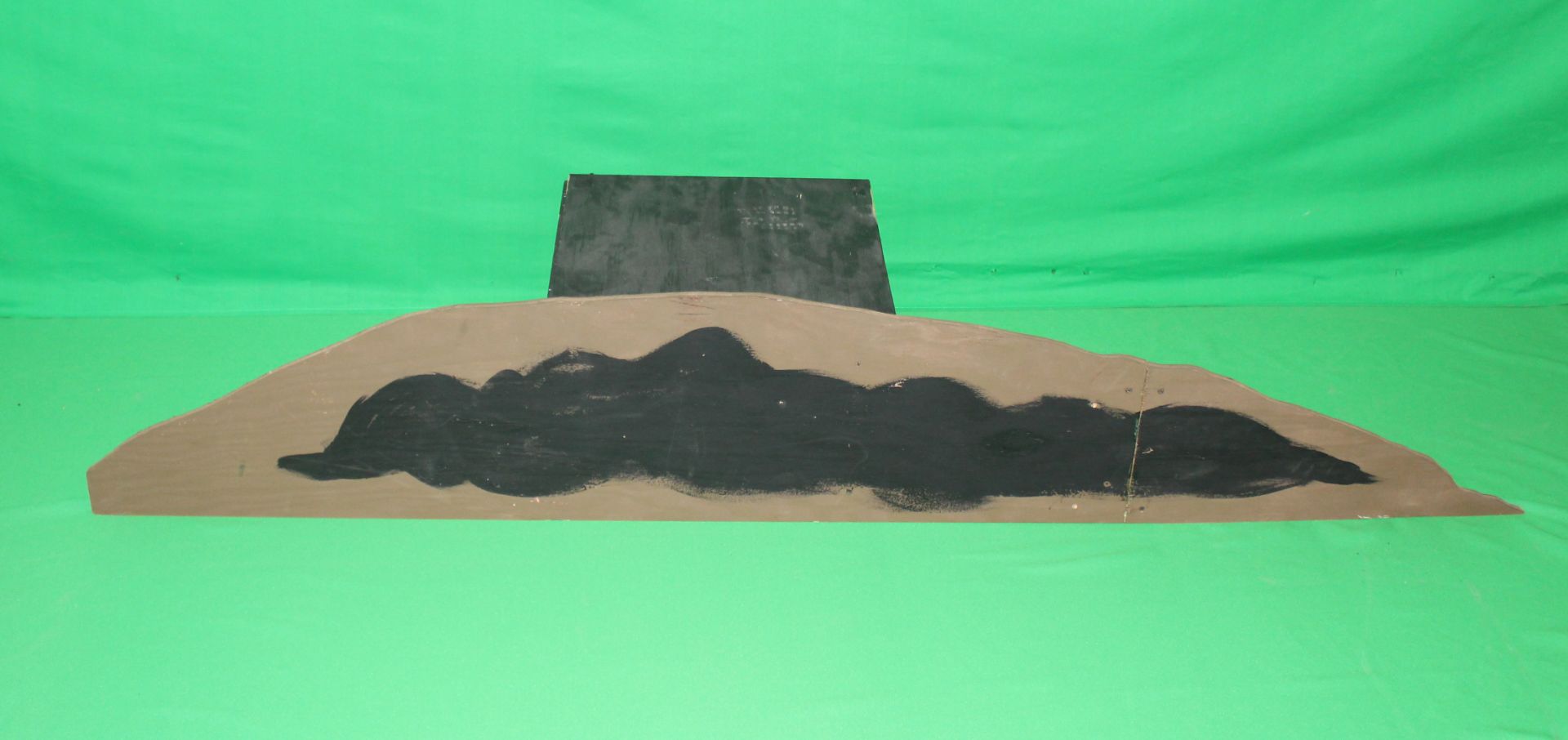 Black, wooden stage box with flat plywood, painted cartoon dirt mound.