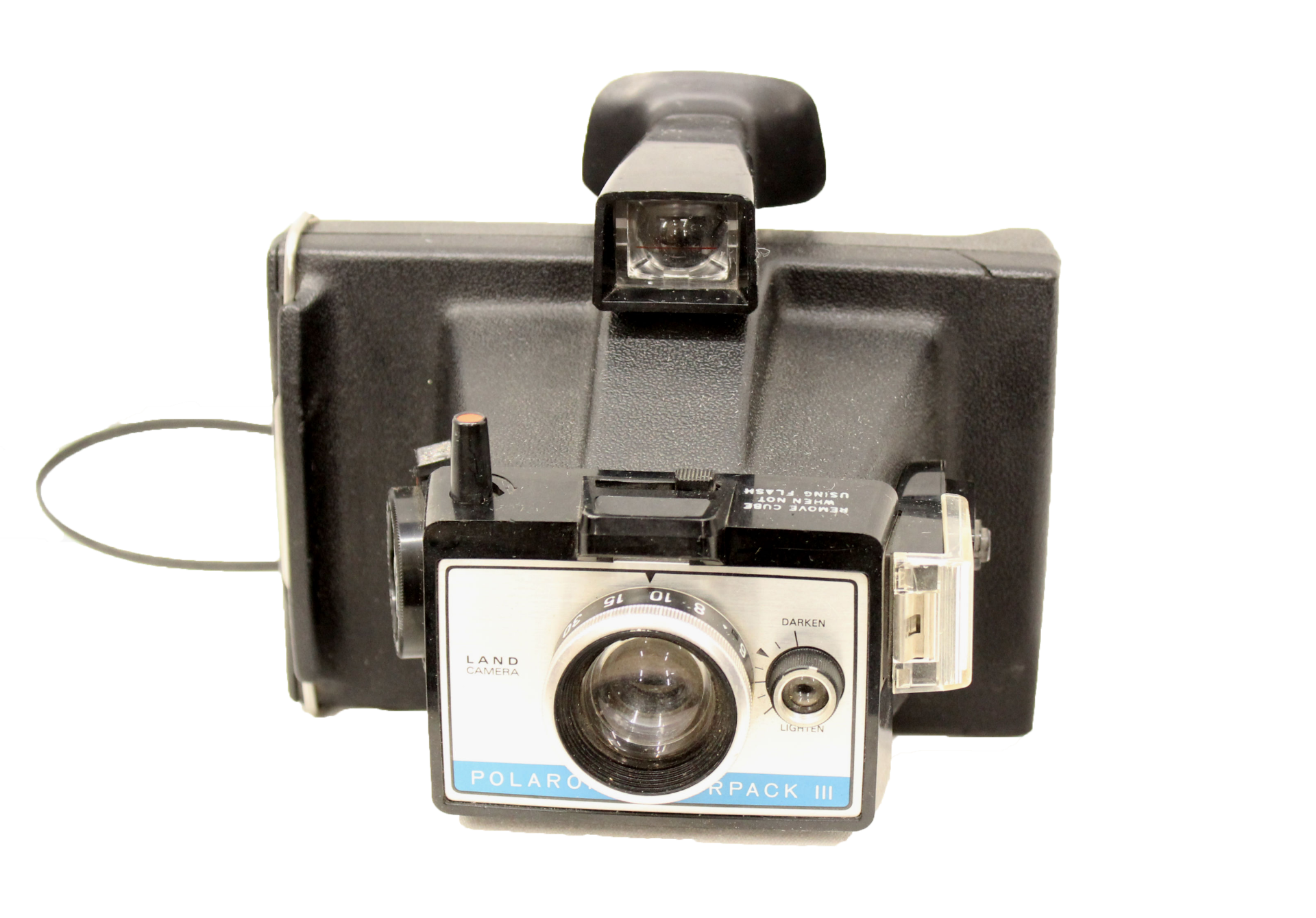 Black Polaroid Colorpack III land camera with wrist strap.