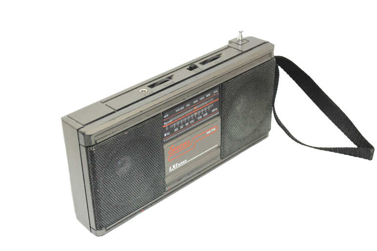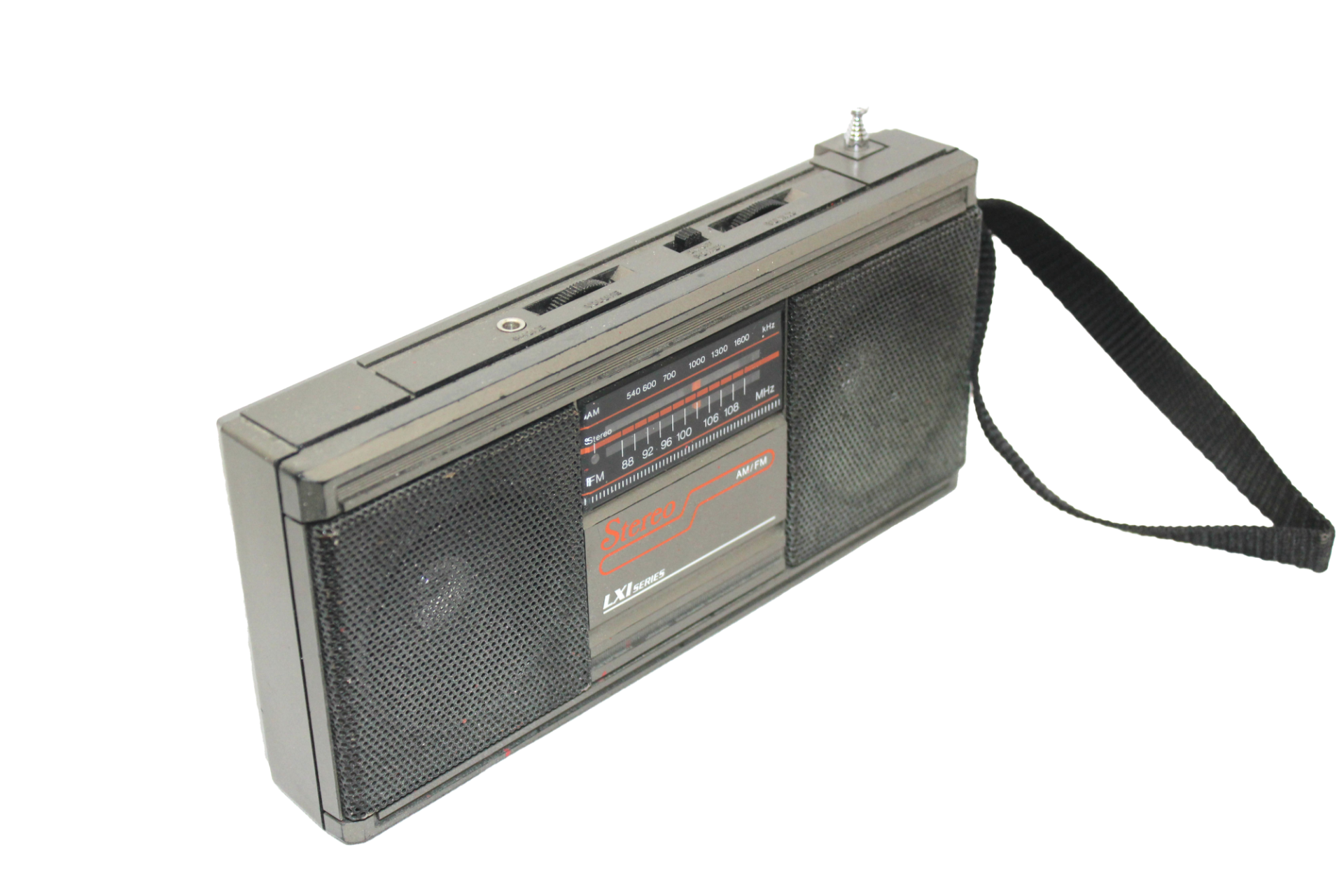 Taupe Sears LXI Series portable stereo with antenna and wrist strap.