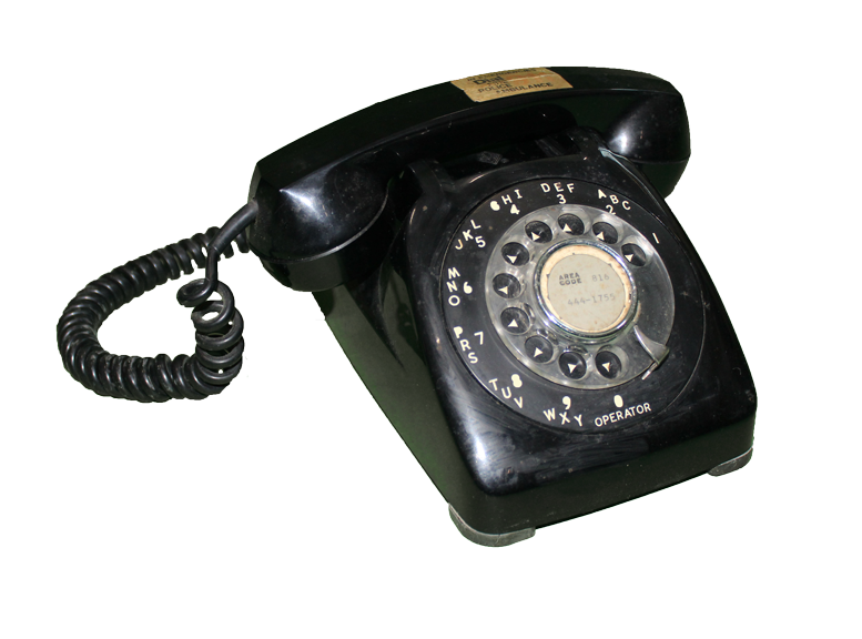 Black Automatic Electric Monophone square, rotary desk telephone.