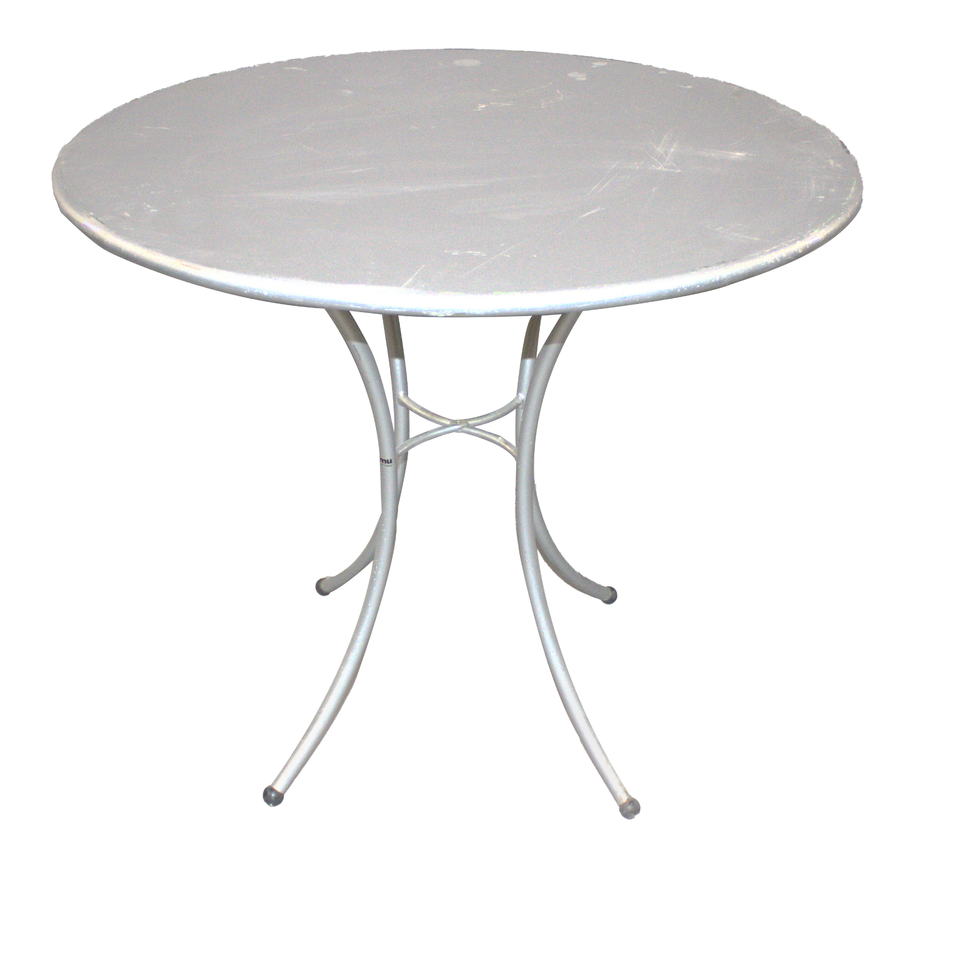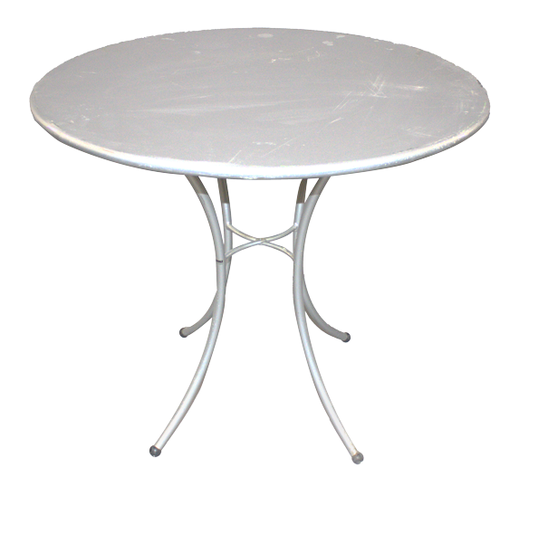 Silver, metal, round table.