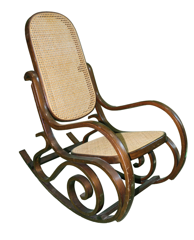 Dark brown, Thonet style rocking chair with light brown, cane seat and back.