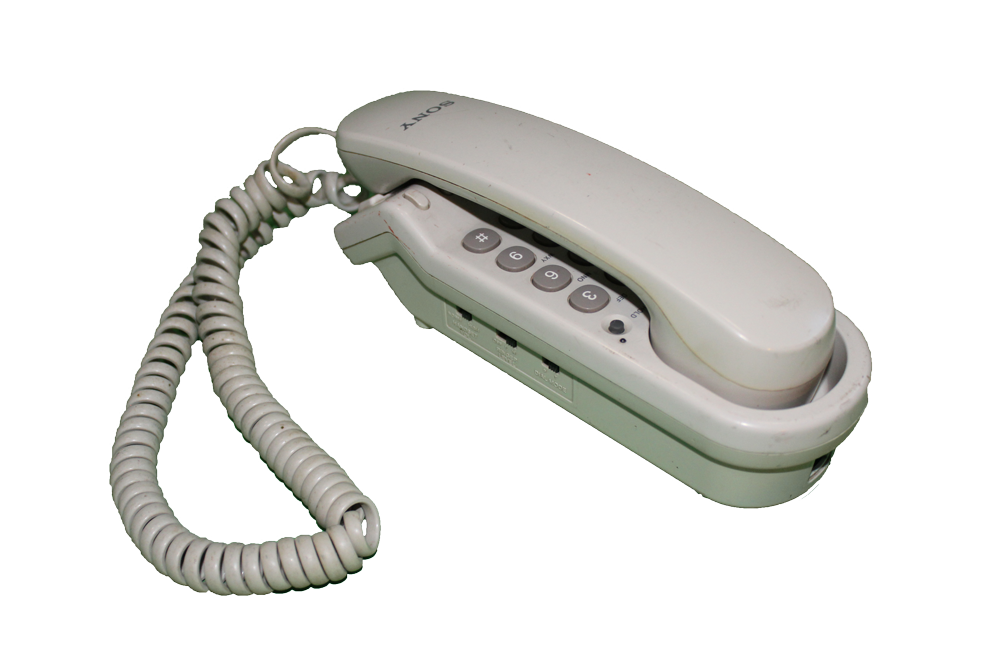 Off white Sony IT-B5 trimline telephone with wall mount.