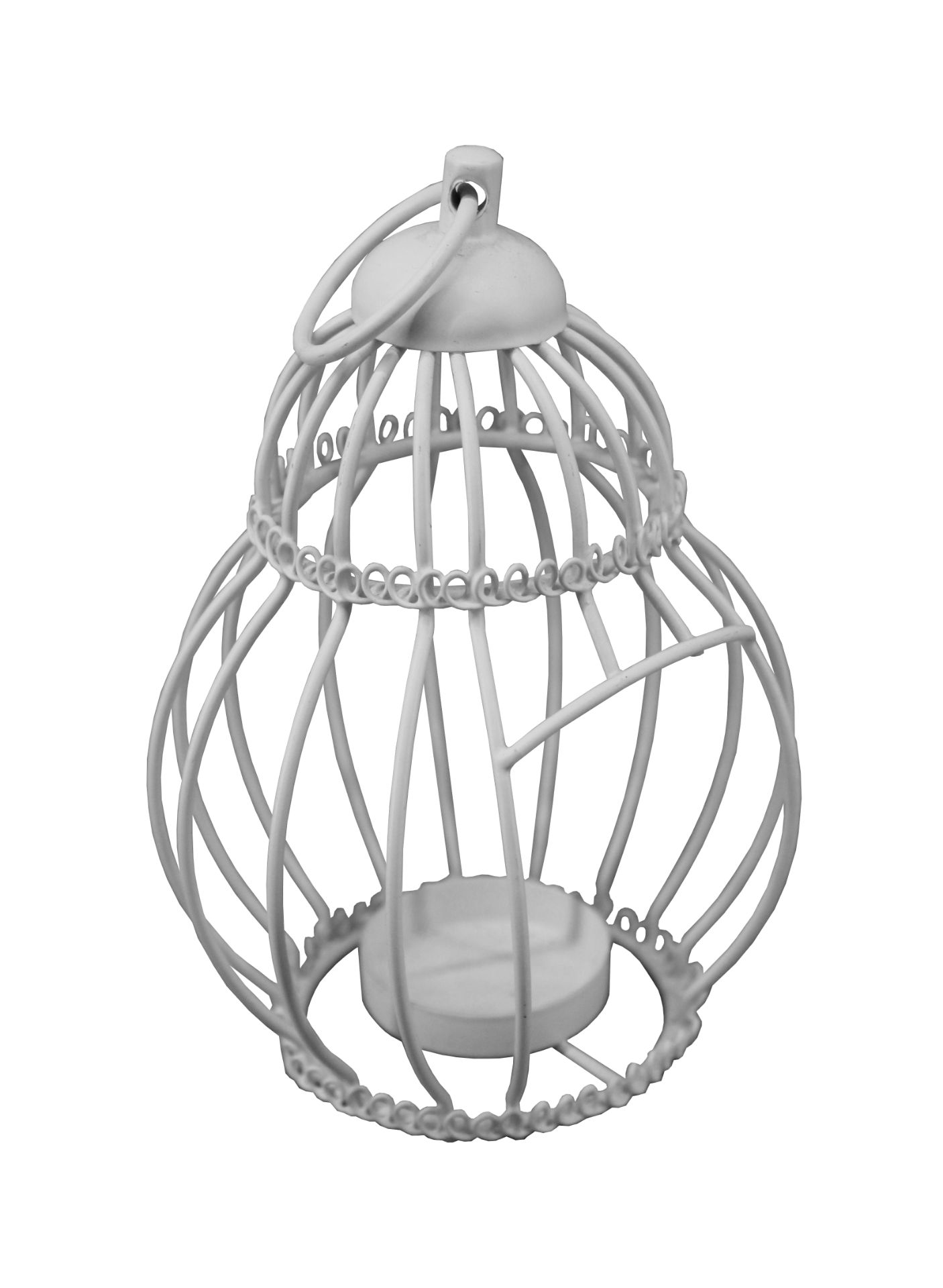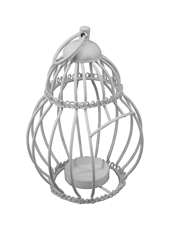 White, wire, hanging birdcage tea light holder.