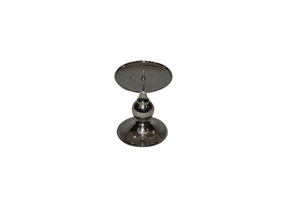 Small, silver, metal candle pedestal.