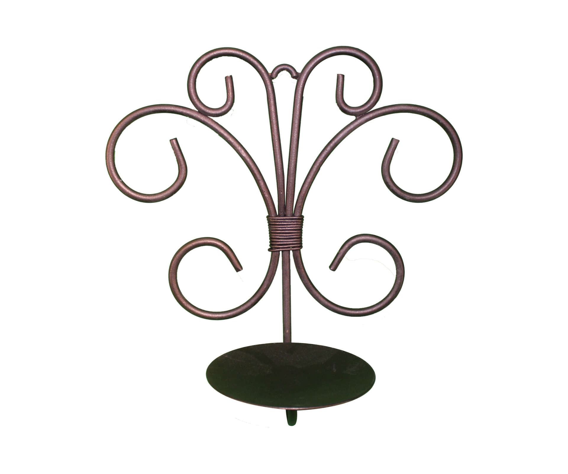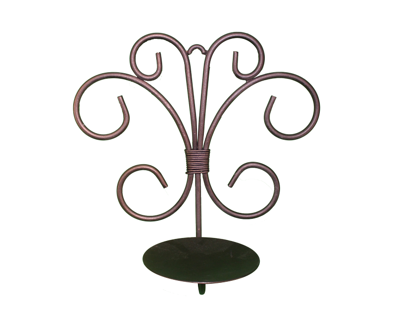 Black, metal, scrollwork, wall hanging, pillar candle holder.