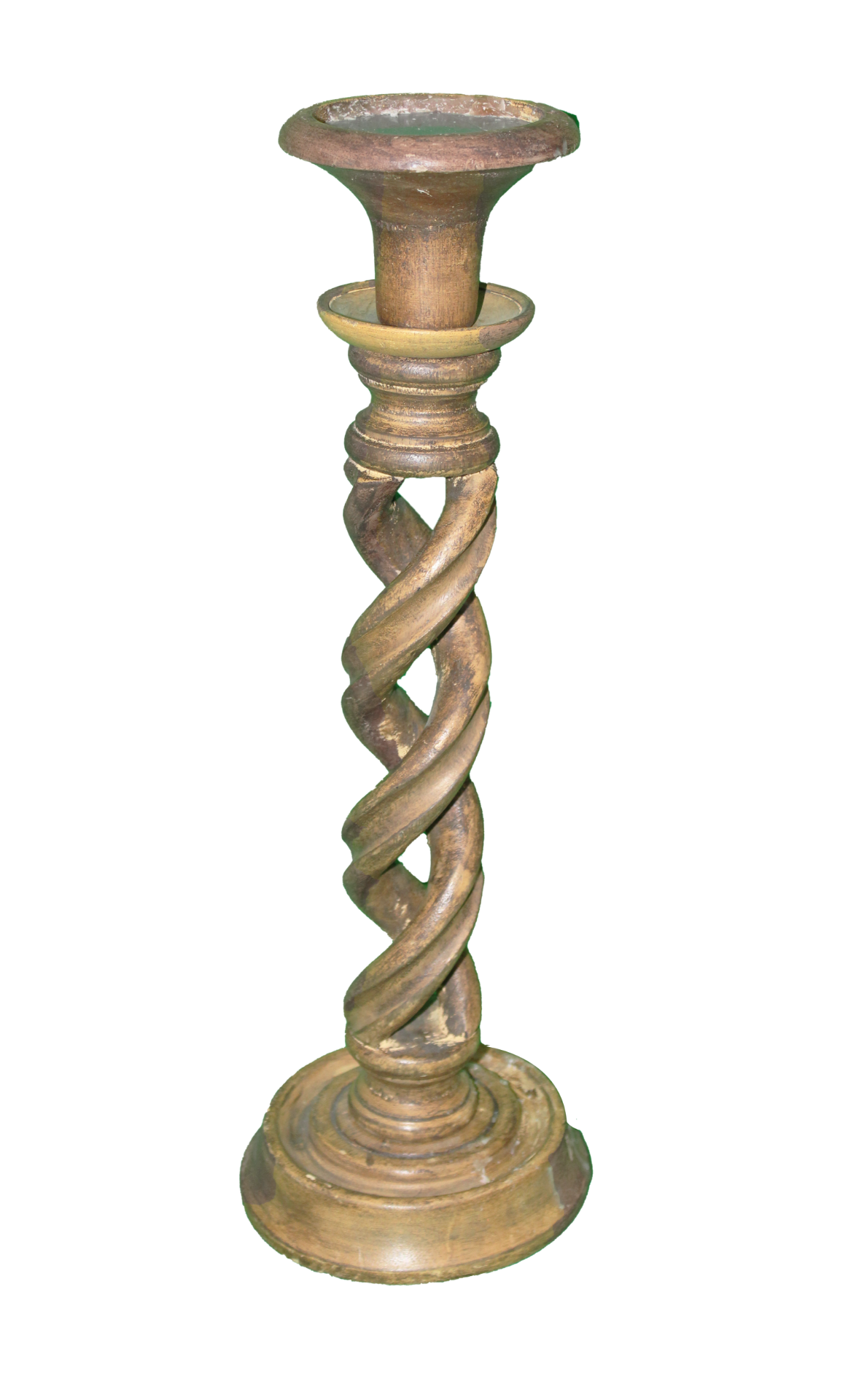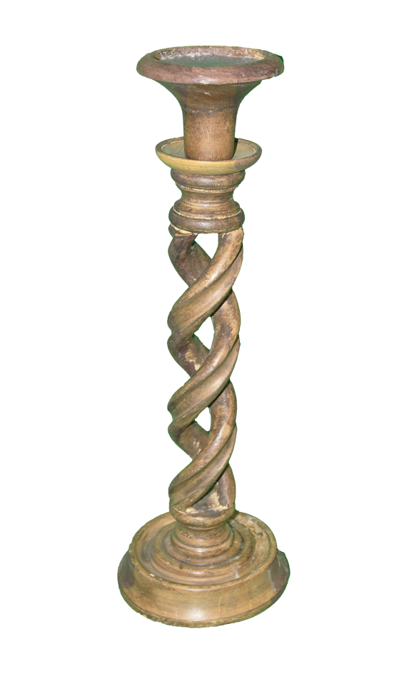 Tall, wooden, spiral pillar candle pedestal.