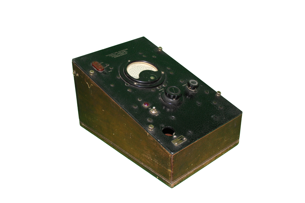 Wooden, rectangular General Radio Co. vacuum tube voltmeter.