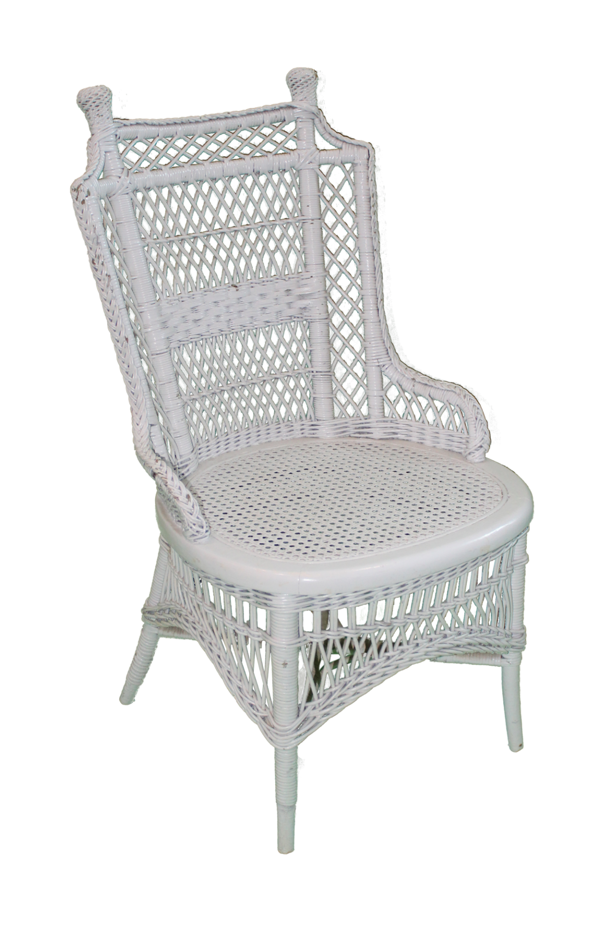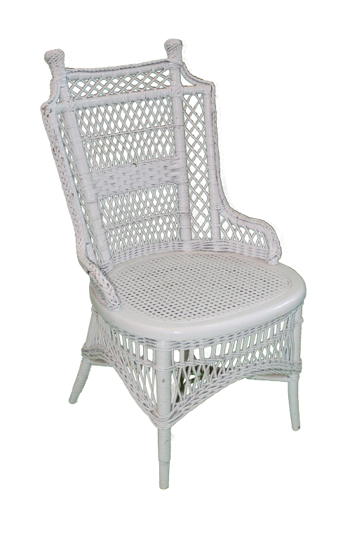 White, wicker side chair with cane seat.